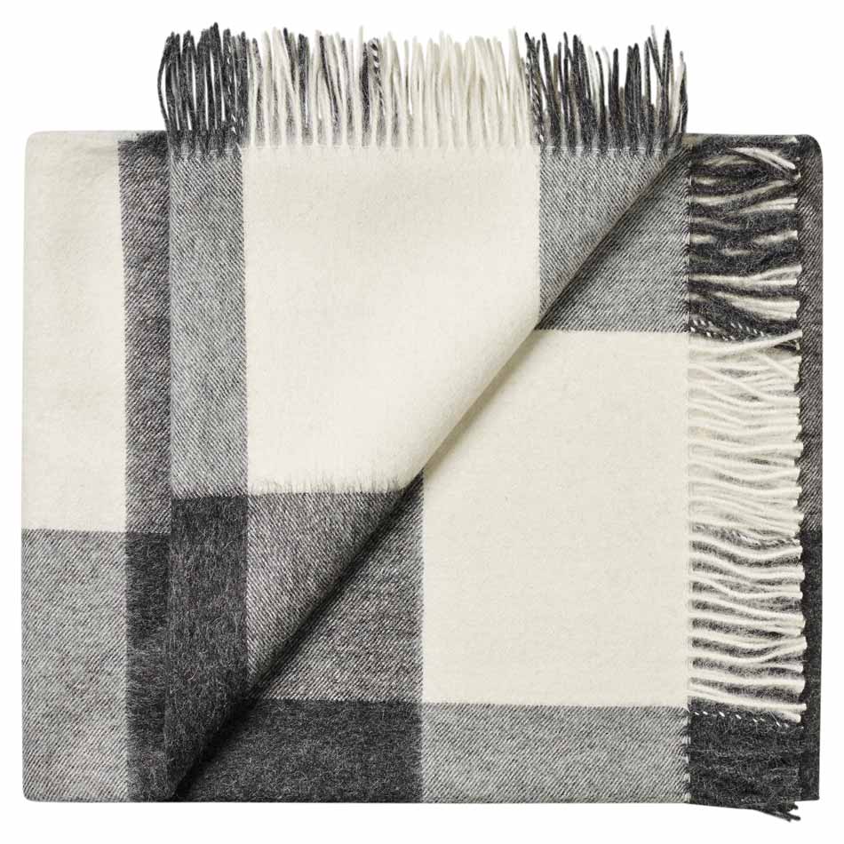 100% Baby Alpaca Throw - Dark Grey Check