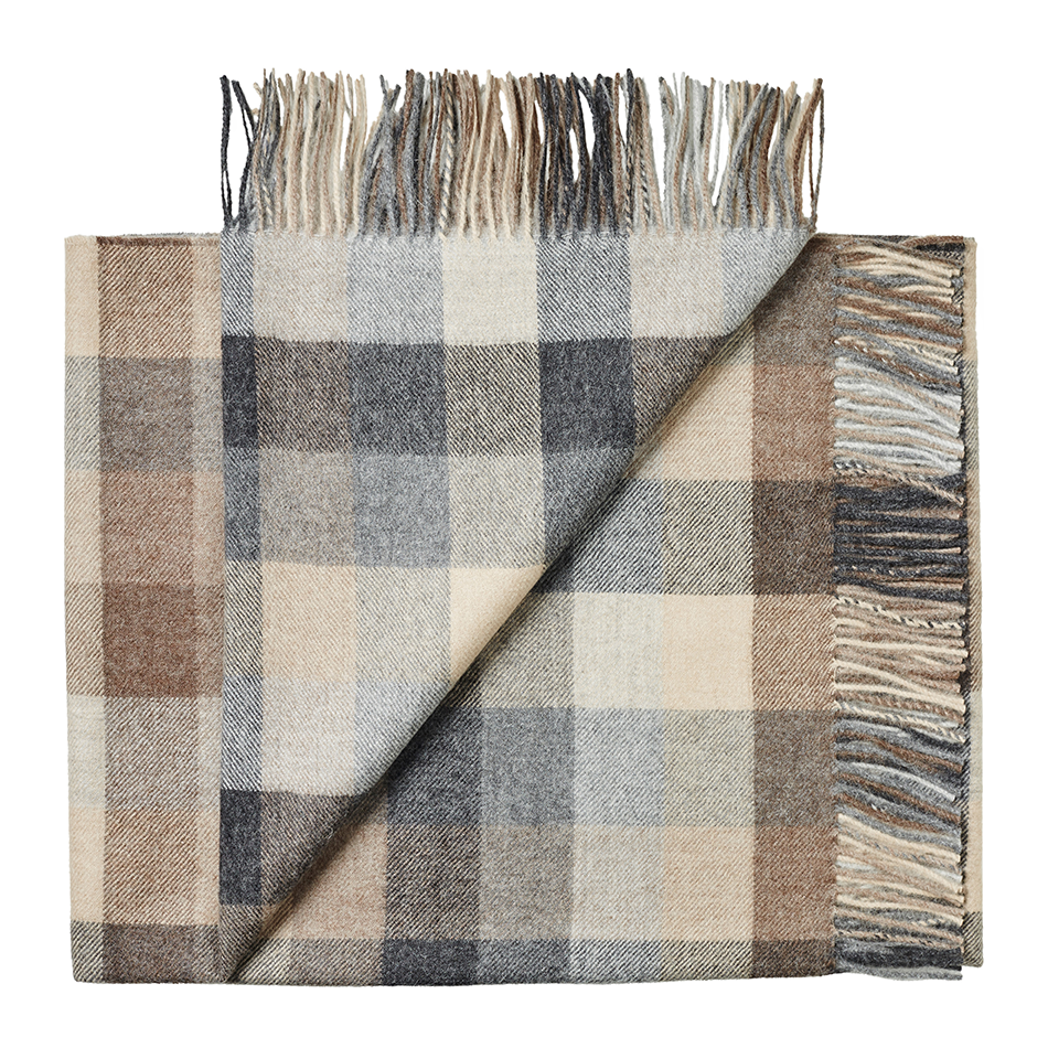 100% Baby Alpaca Throw - Dark Grey/Umber Check