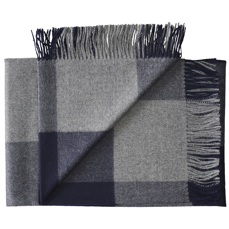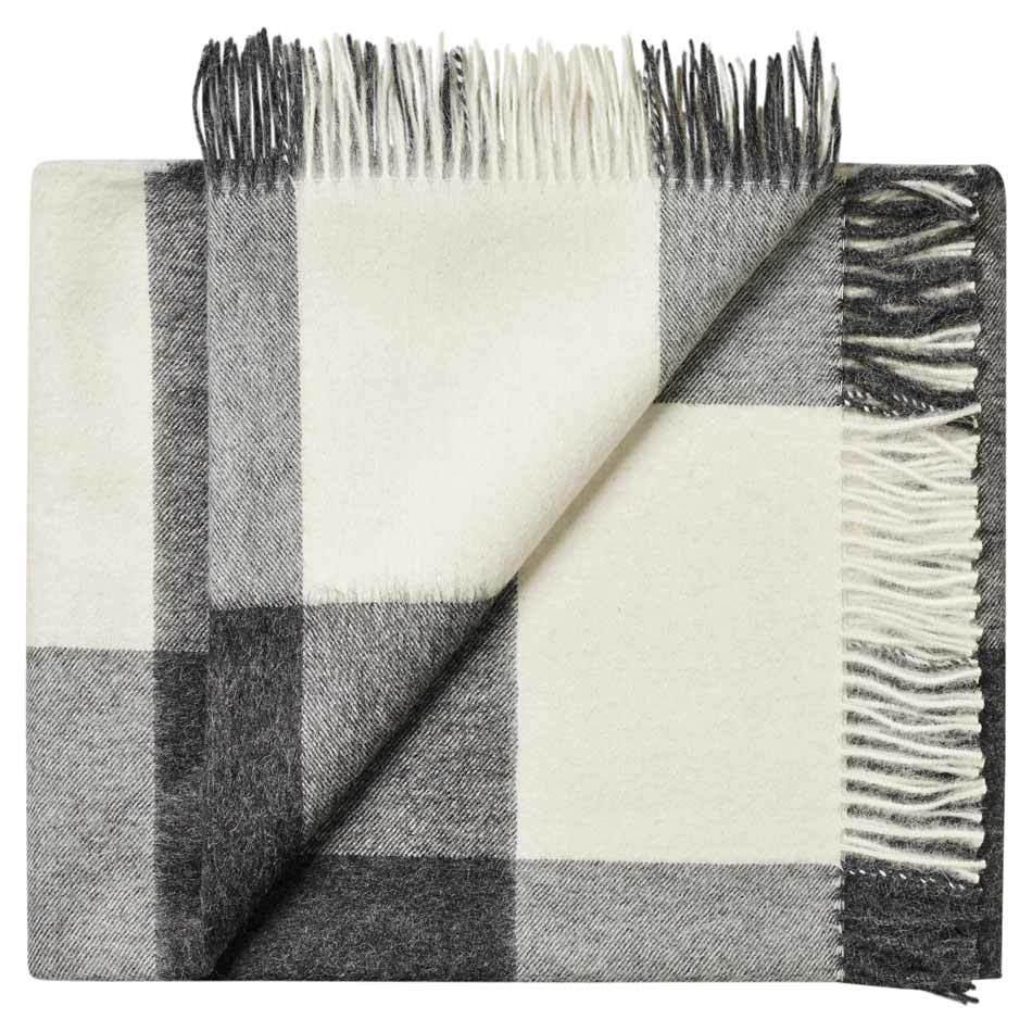 100% Baby Alpaca Throw - Medium Grey / Marina Check